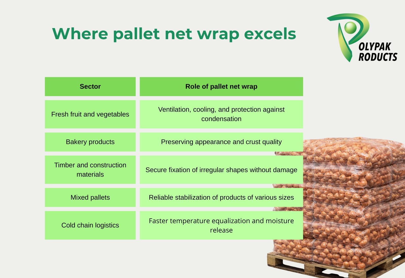 For these scenarios, pallet net offers an optimal solution. It combines pallet stability with ventilation, while reducing the risk of product damage during transport.